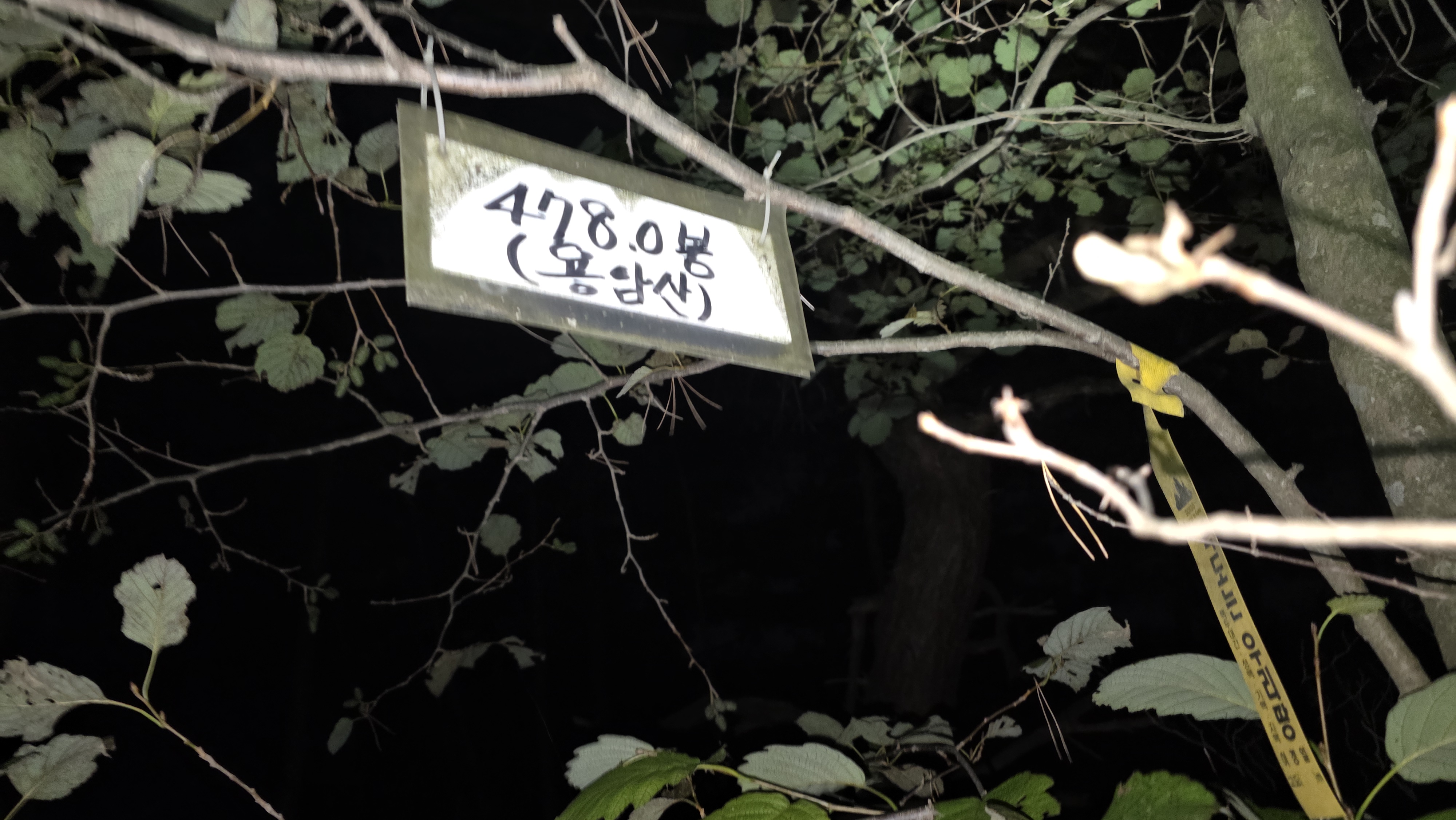 토요일 오후에 비 예보가 있어 새벽 3시 45분 예고개 표지석에서 봉화산을 향하여 산문에