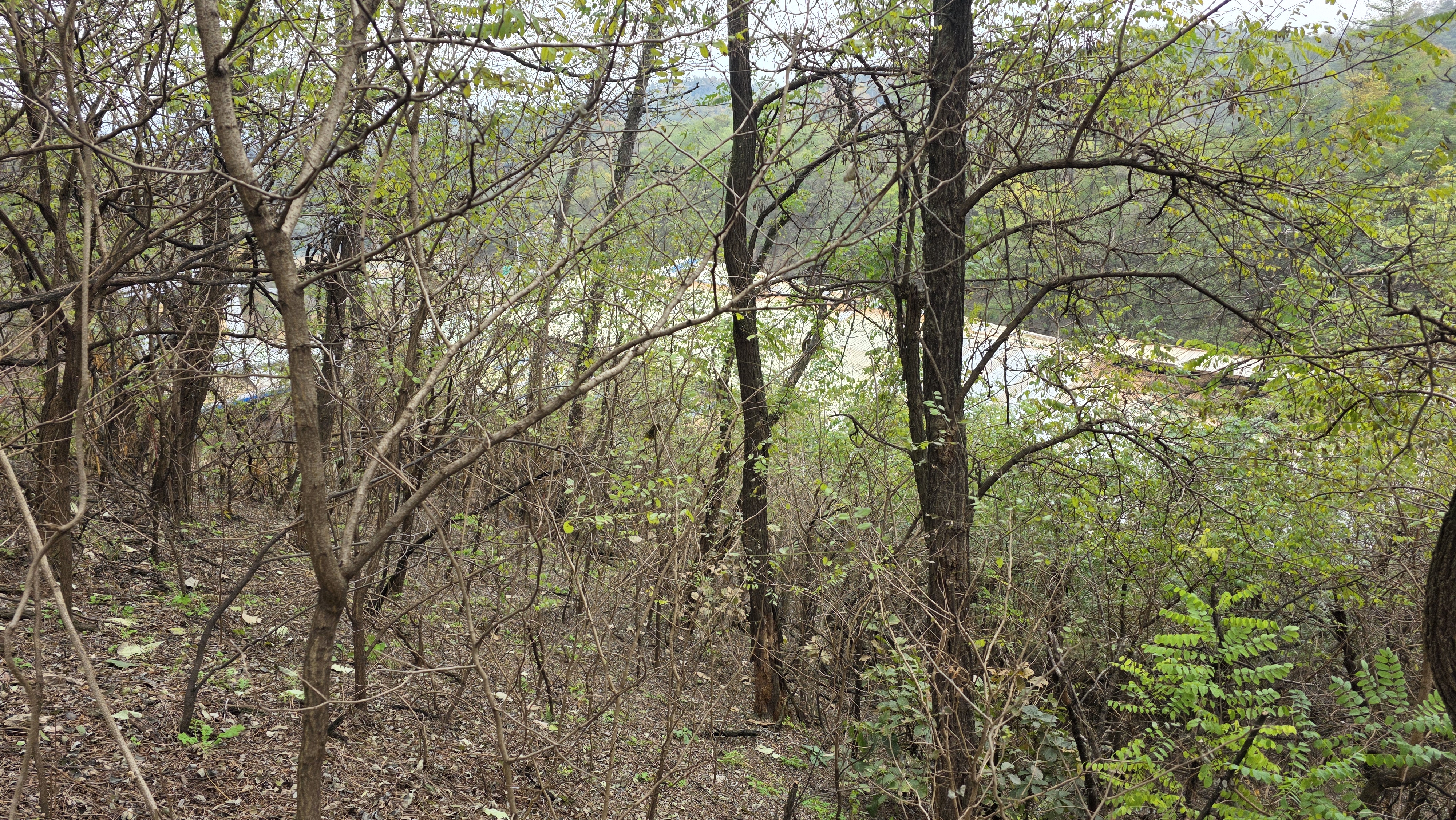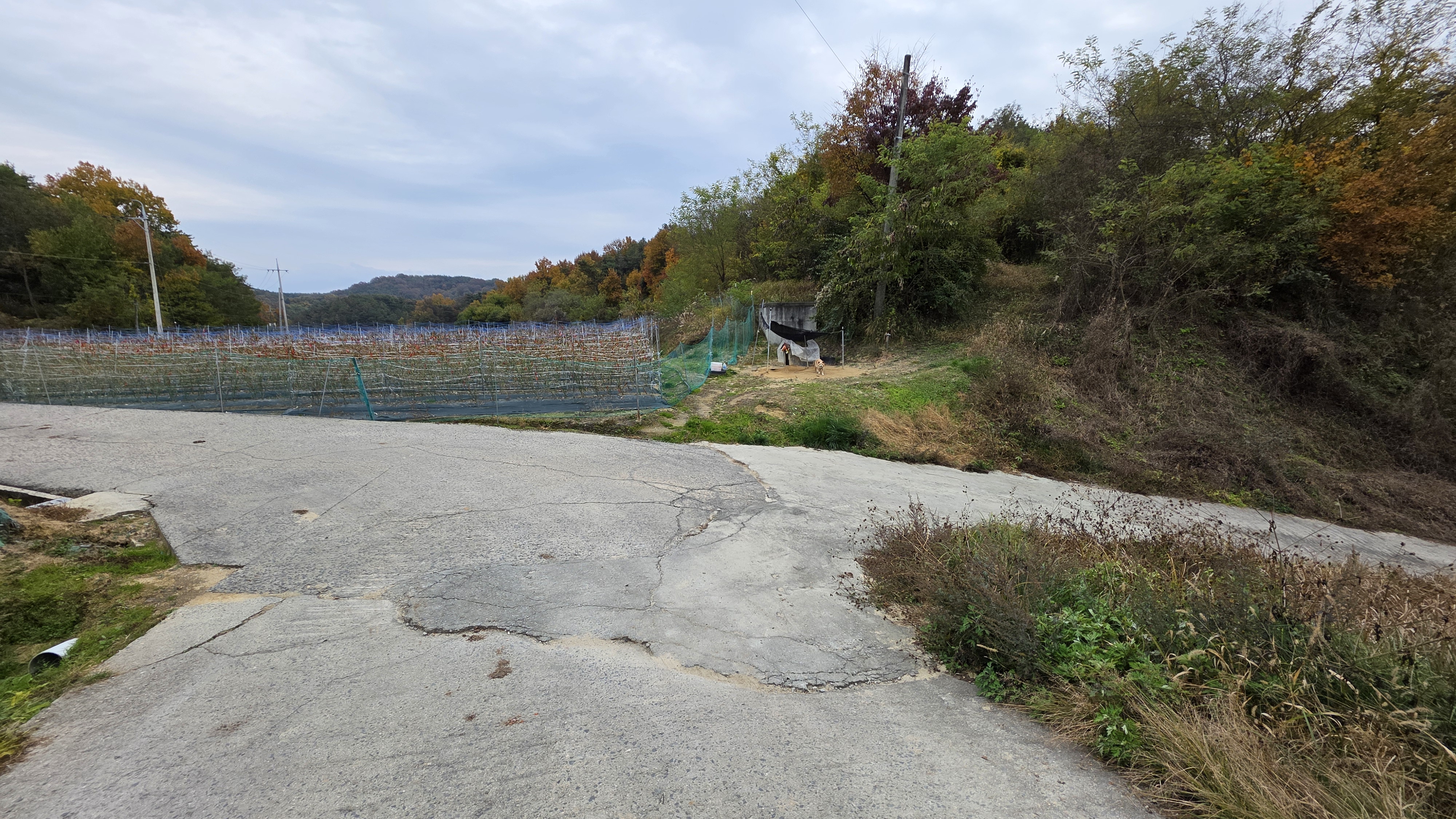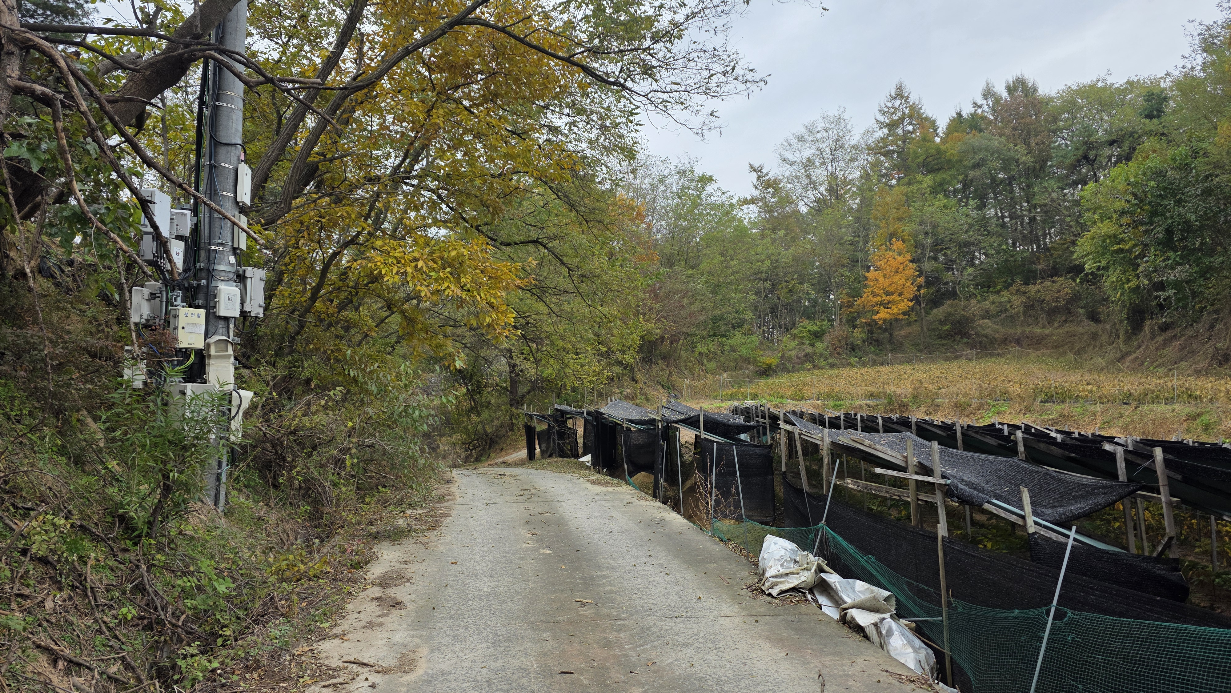 산 허리가 잘리면서 지도에 없는 공장부지, 우편으로 숲길에 접속합니다.