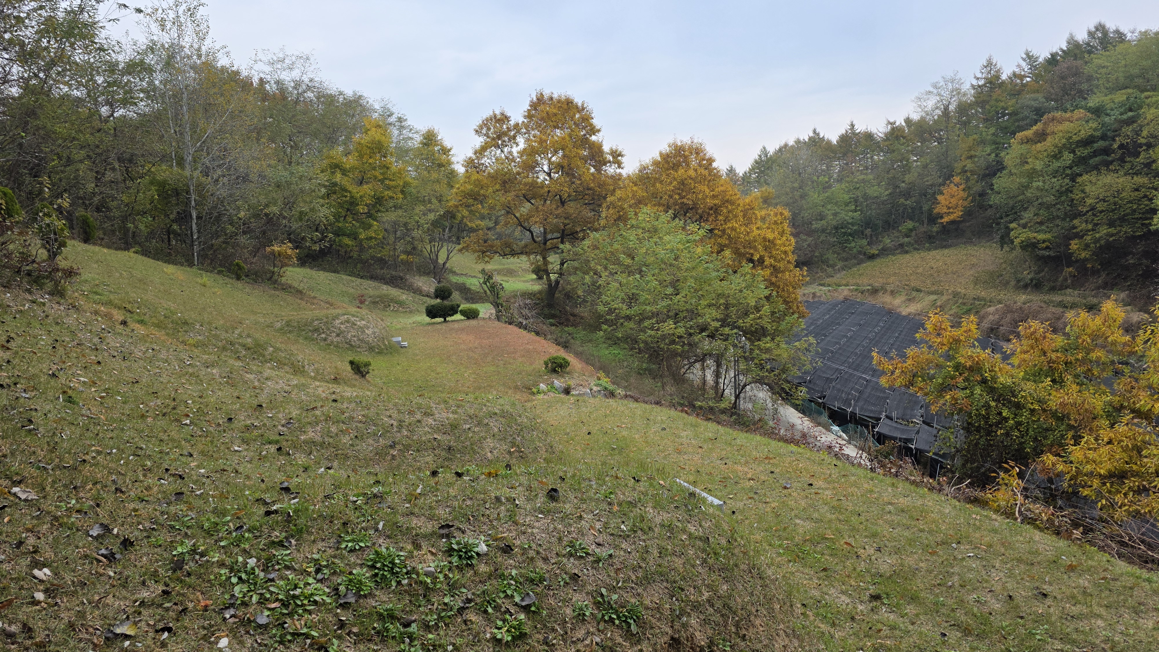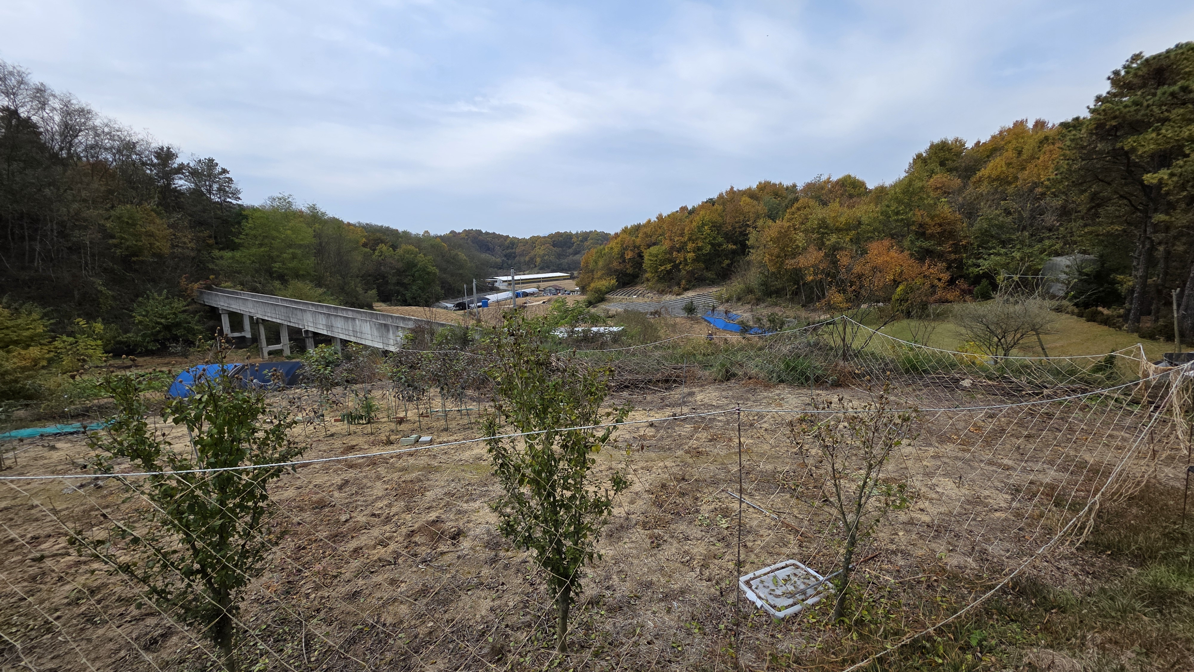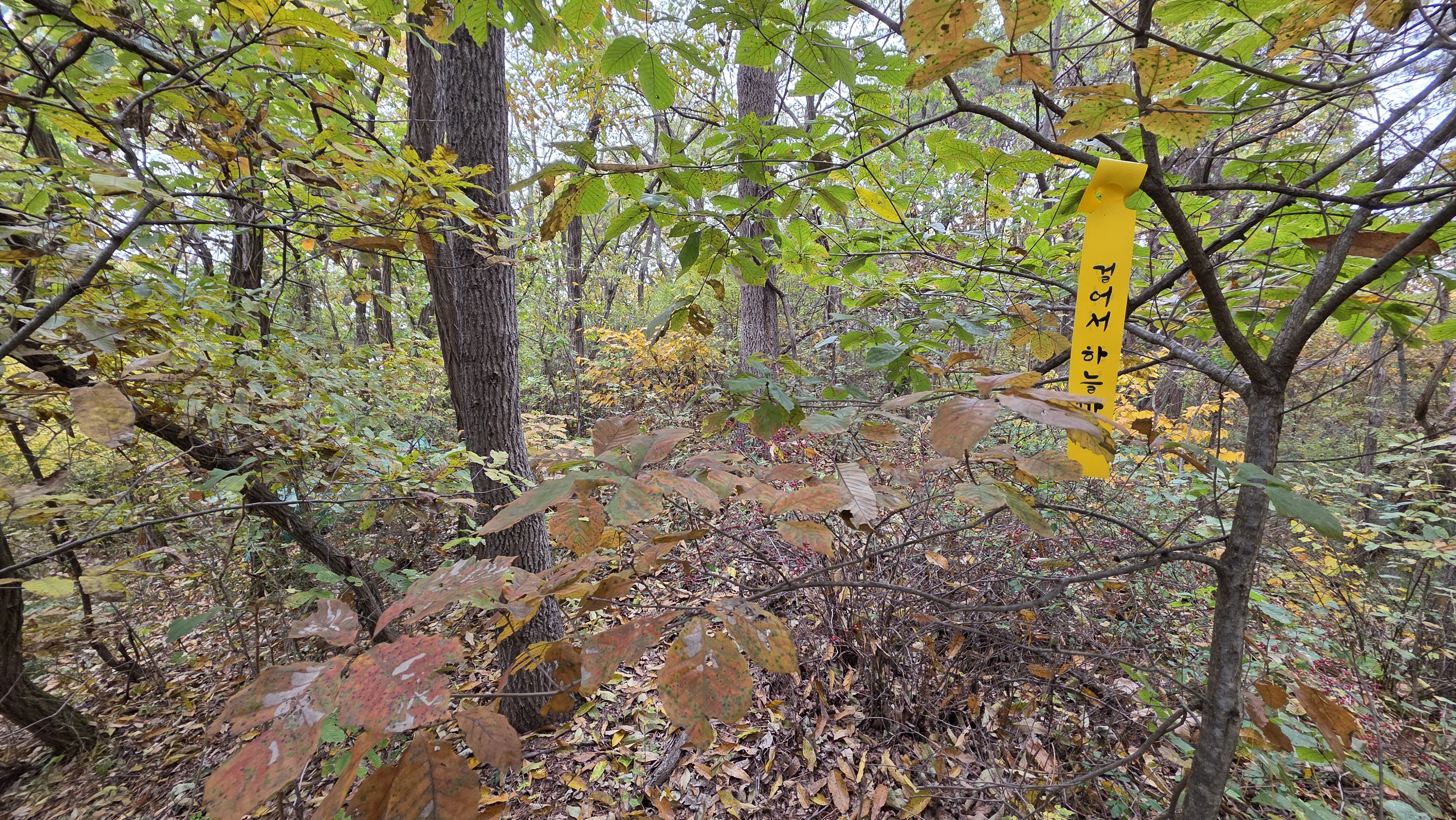 산 허리가 잘리면서 지도에 없는 공장부지, 우편으로 숲길에 접속합니다.
