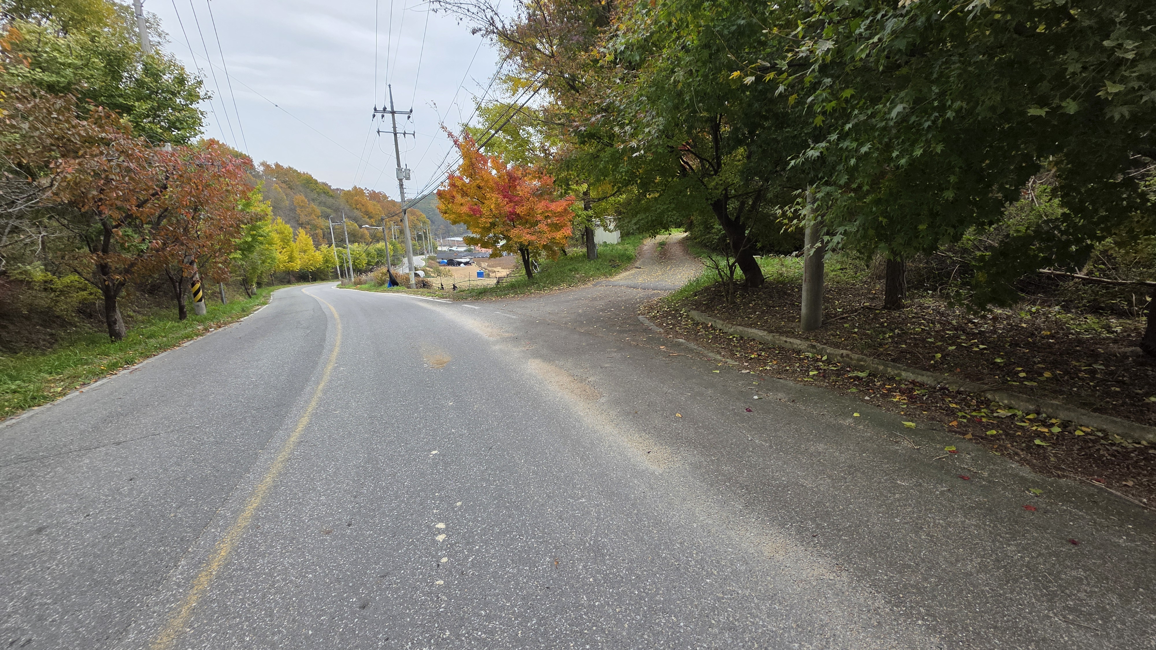 포장도로 마을길을 좌방향으로 따르다가 갈림길에서 우방향으로~
