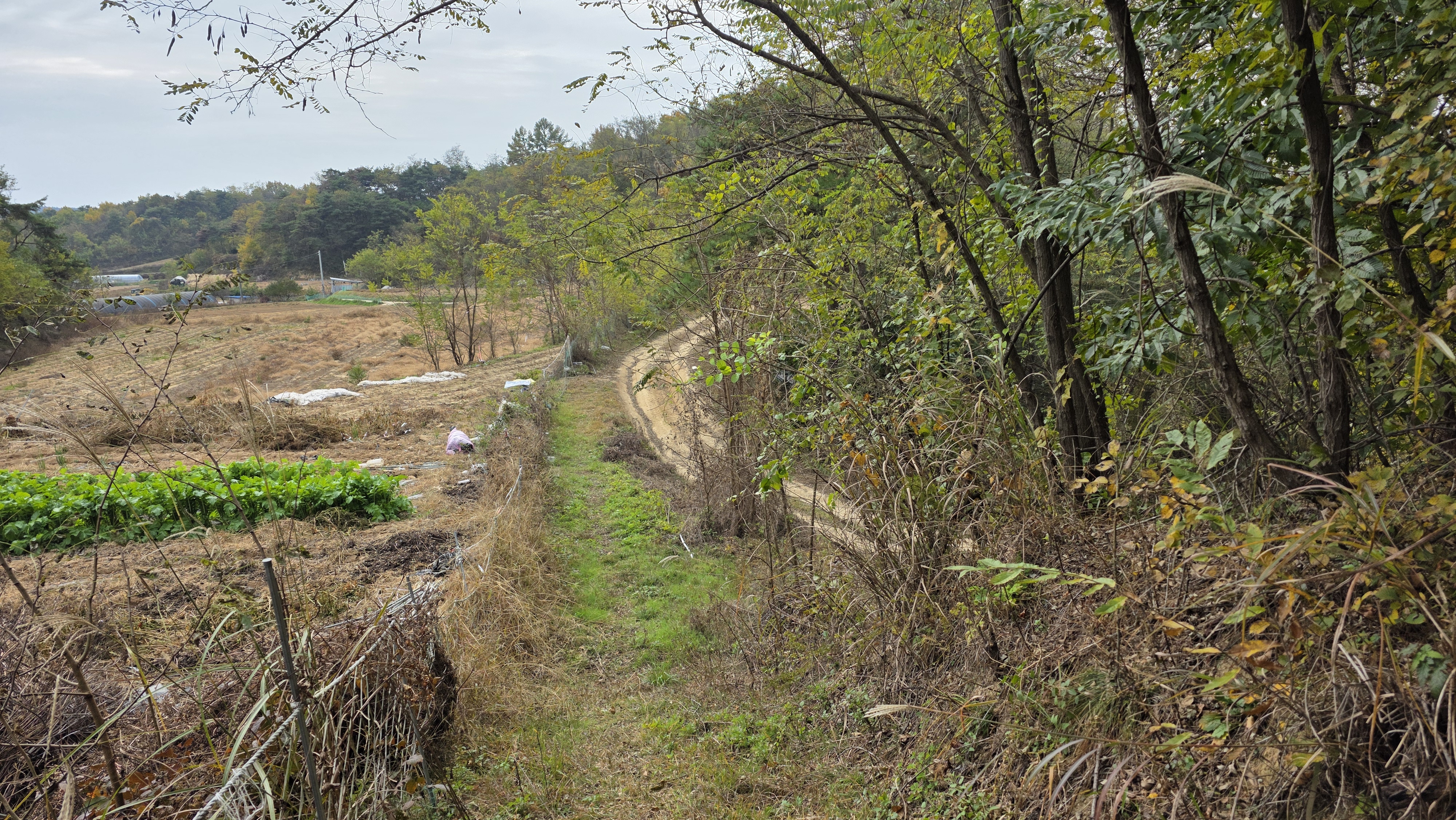 숲길을 내려서니 수로가 보이고 수로를 지나 좌방향 등산로를 따릅니다.