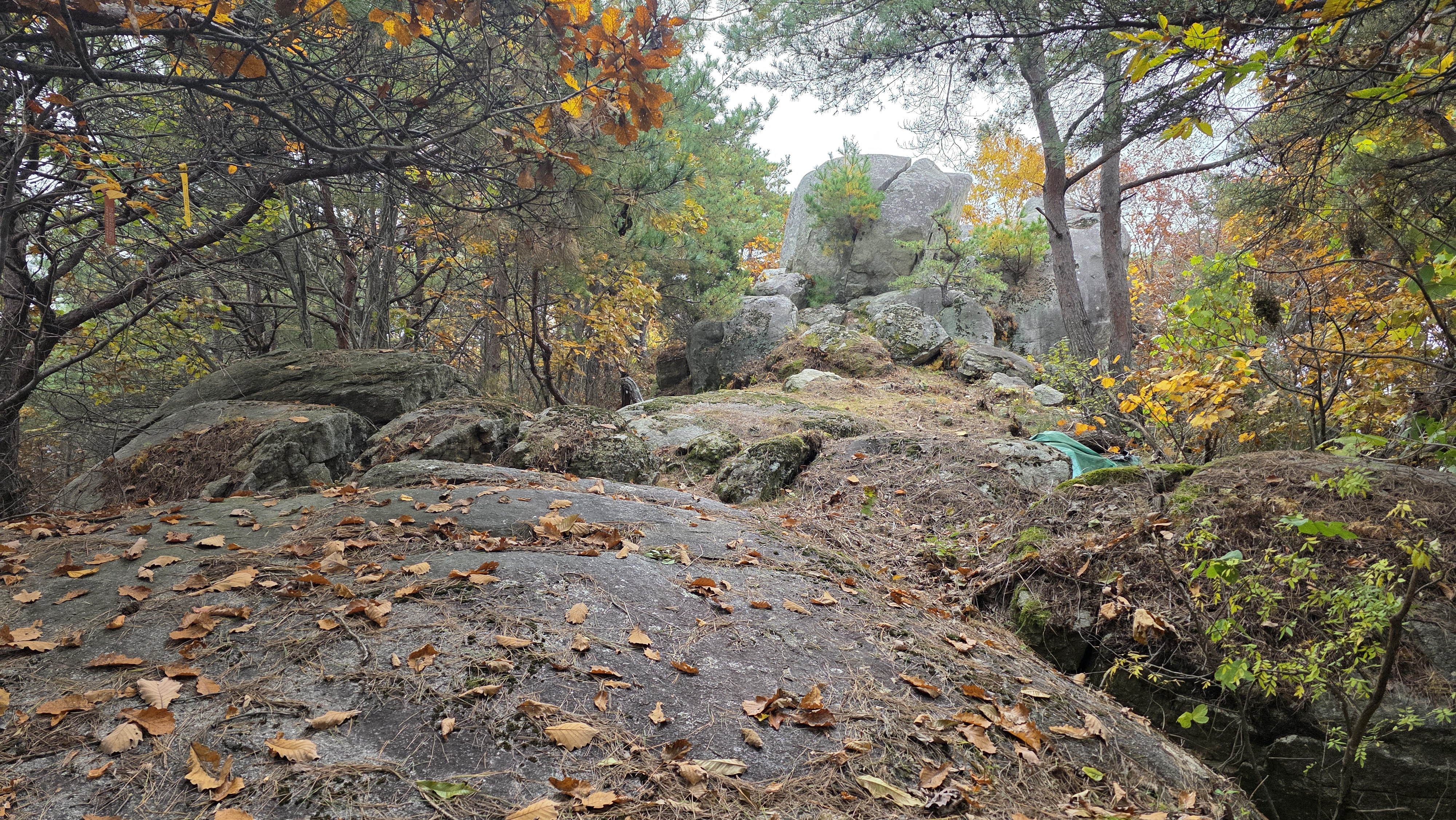 능선 우 밭에 인상 깊었던 바위들, 인삼밭 포장도로 ~