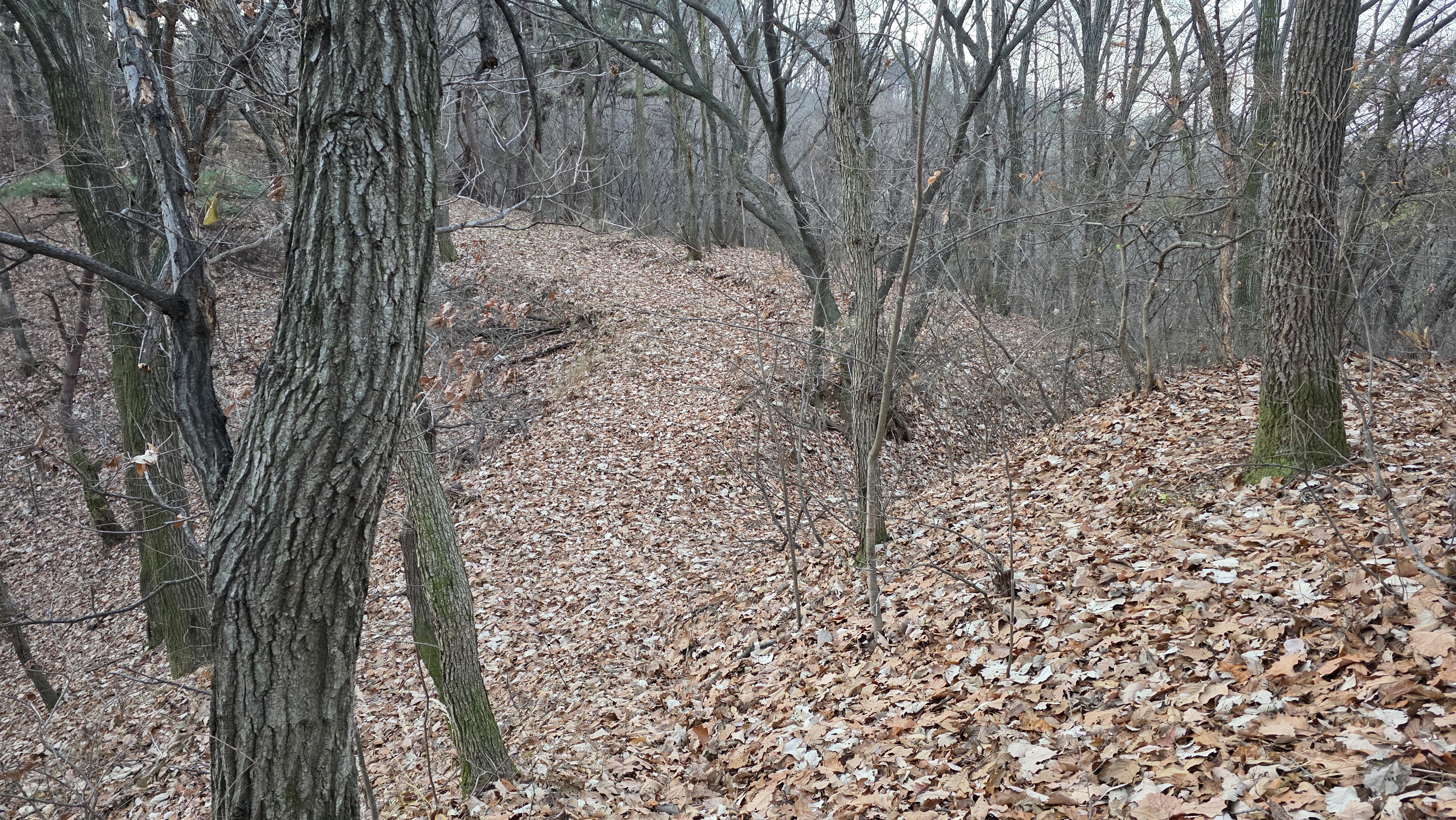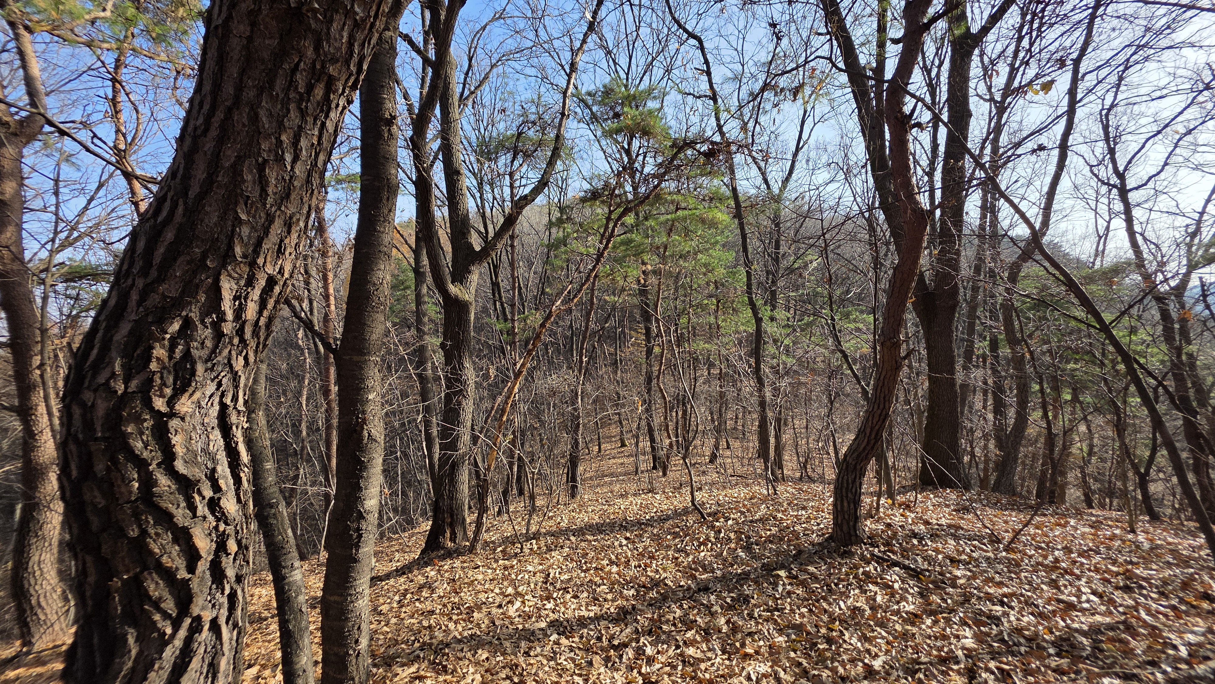암릉을 우회하는 급경사 내리막에는 낙엽이 수북하여 미끄럼에 애를 먹습니다.