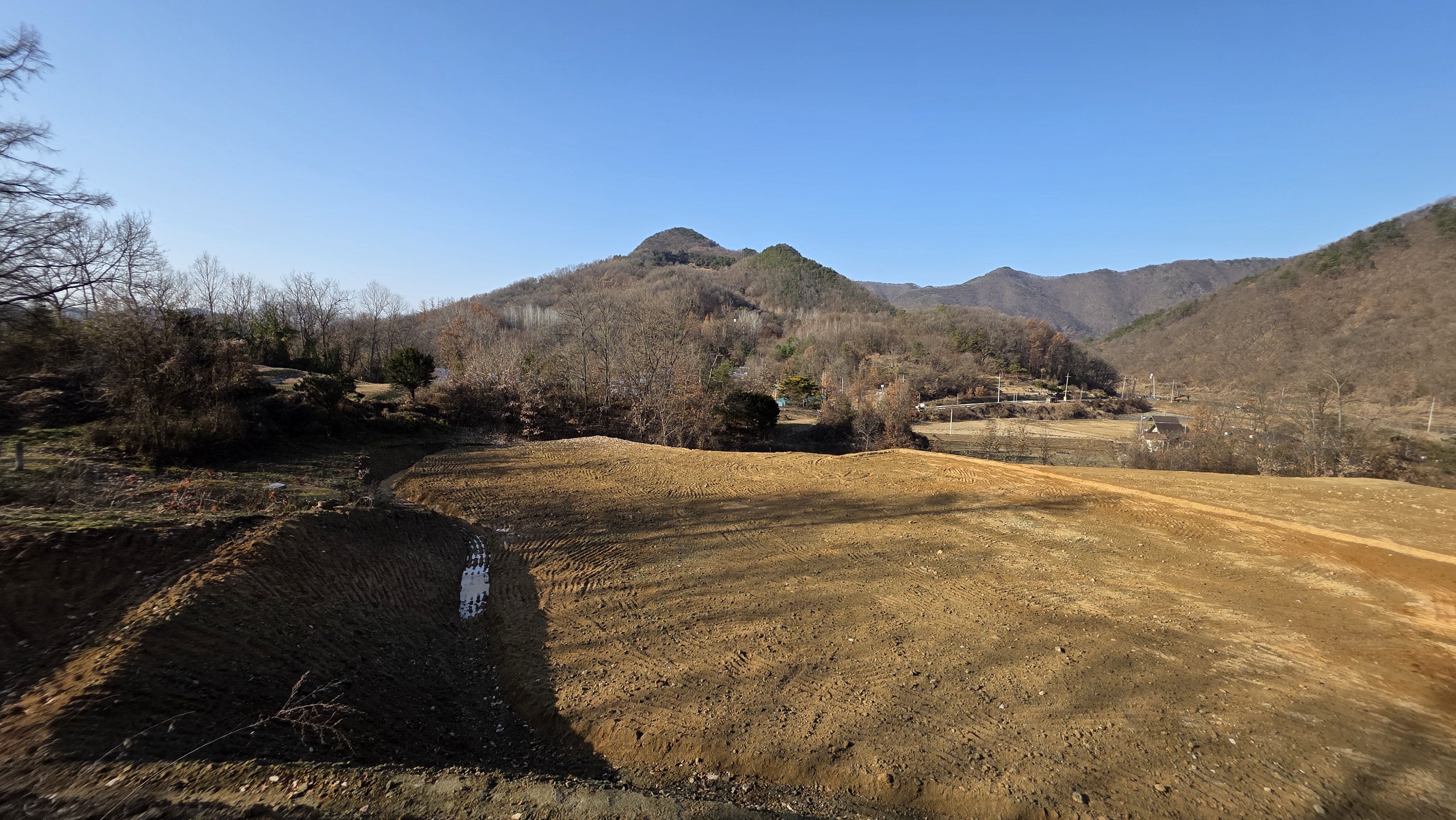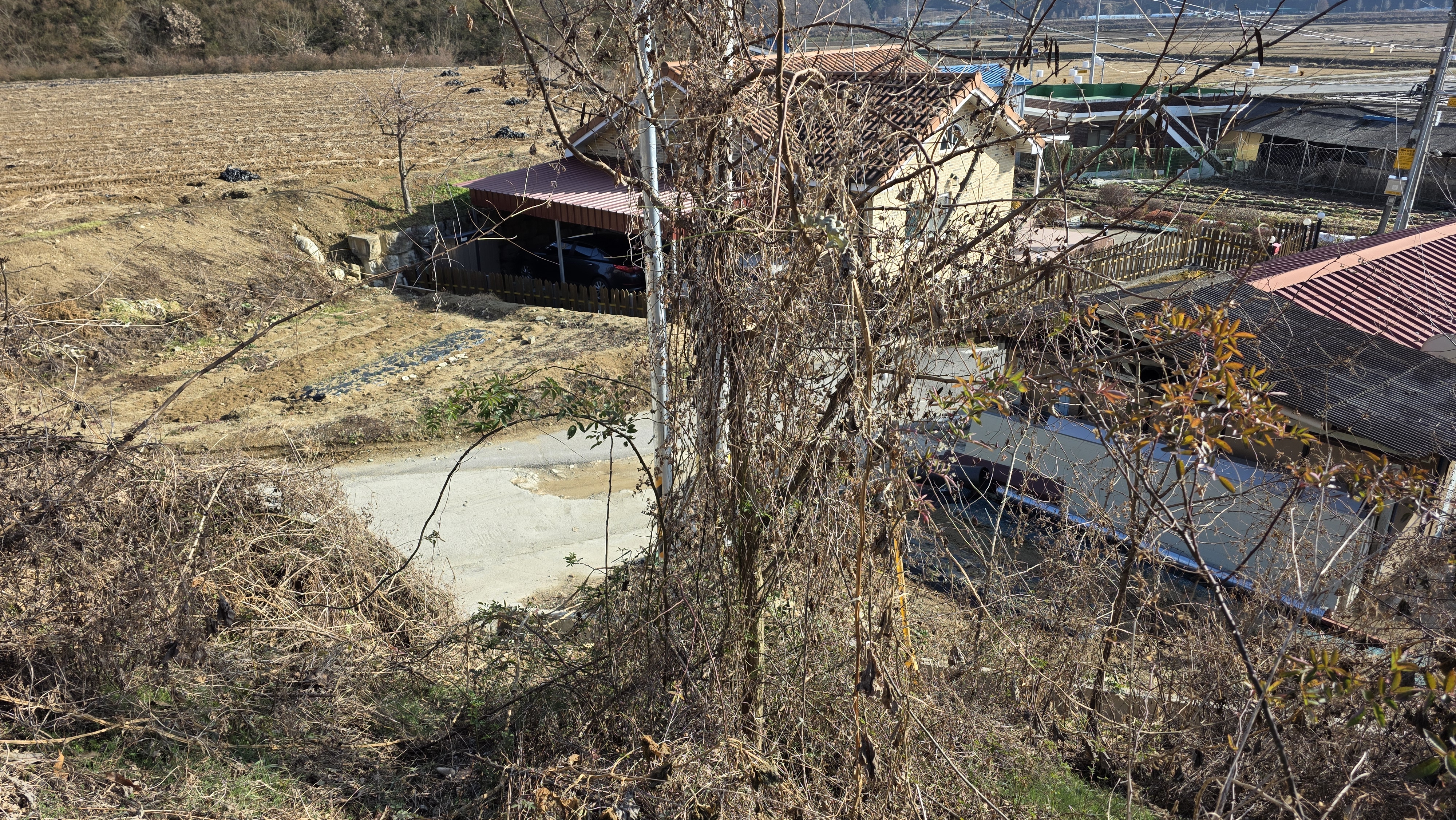 민가 끝에서 담벼락 절개지를 내려서야 했고~