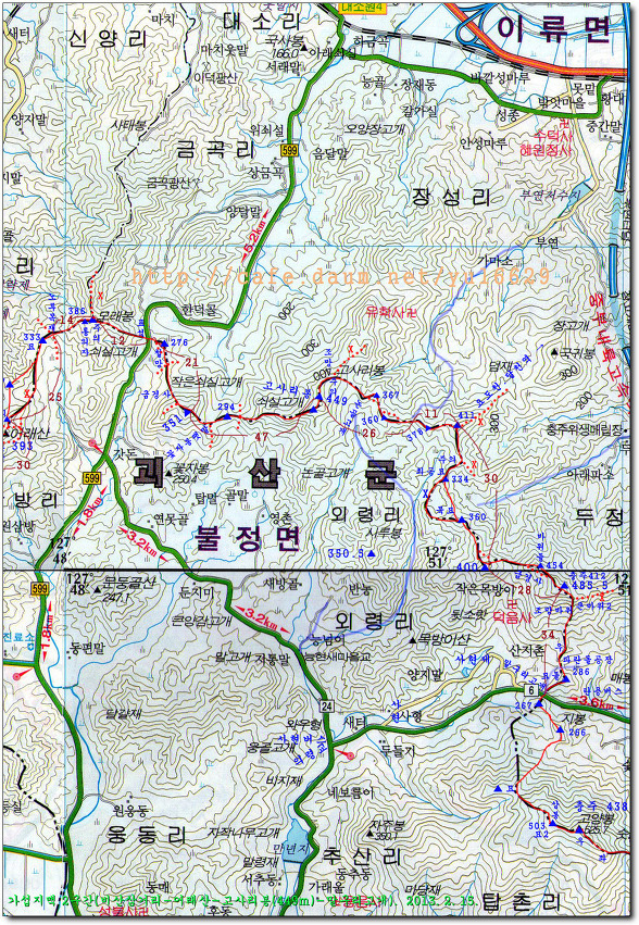 산행지:충주시 대소원면, 괴산군 불정면 일대