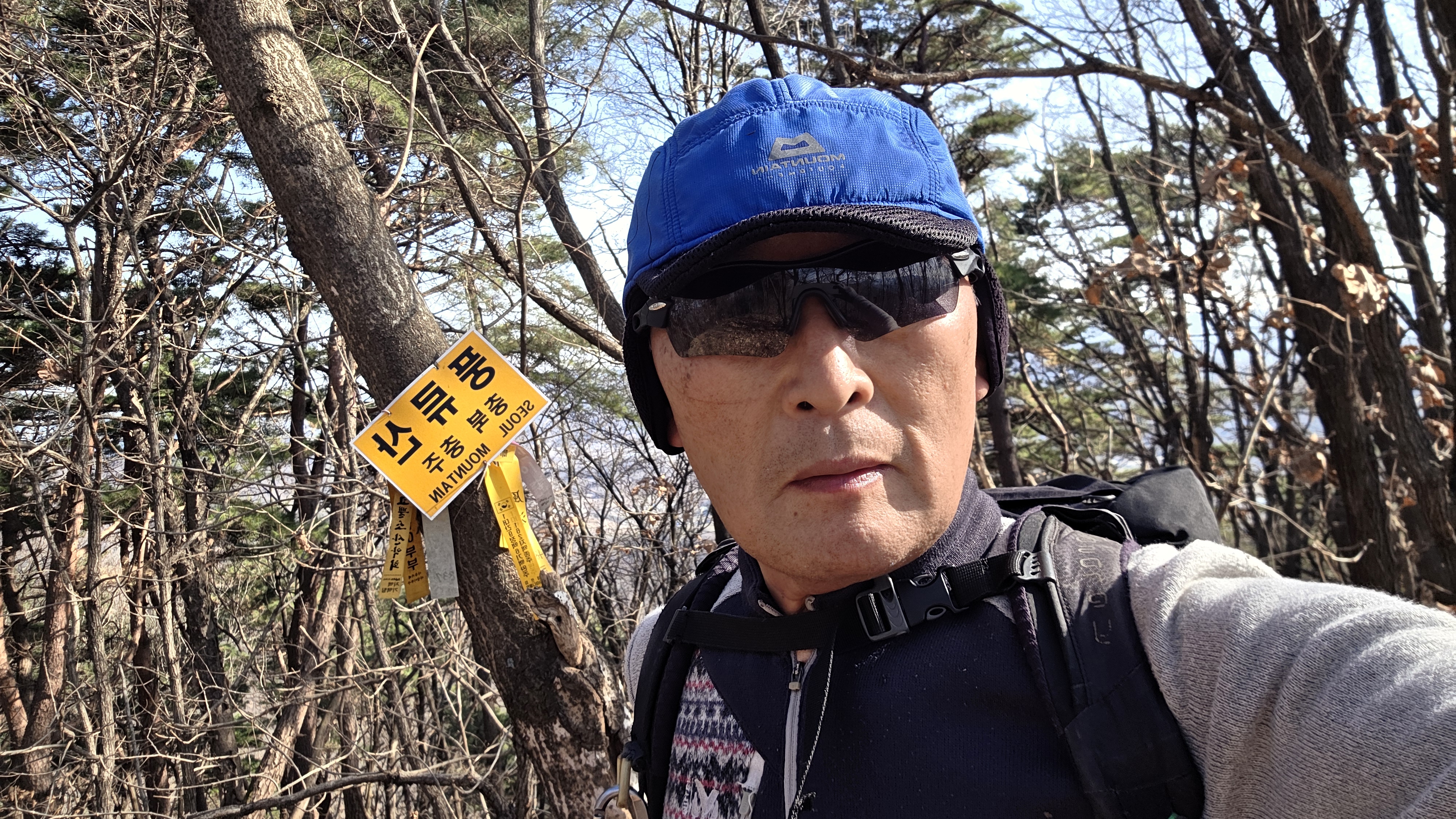 10:06 꾸준한 오름길에 무명봉, 반바지님 상봉(502m)이라 산패를 걸으셨고~