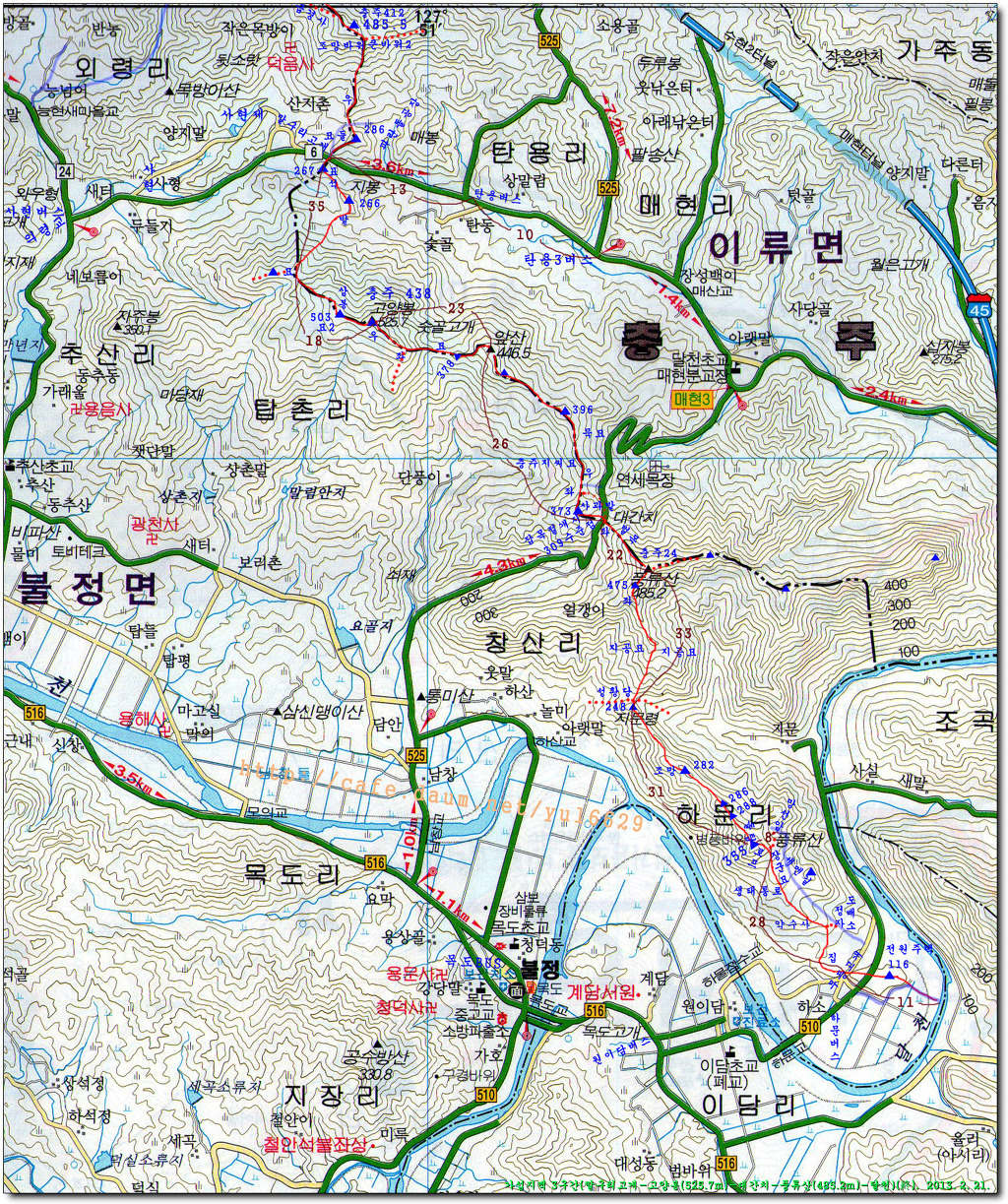 달천에서 508번 지방도 무량약수사 입구로 퇴각하였고 불정면 목도택시(043 833 6300) 콜~