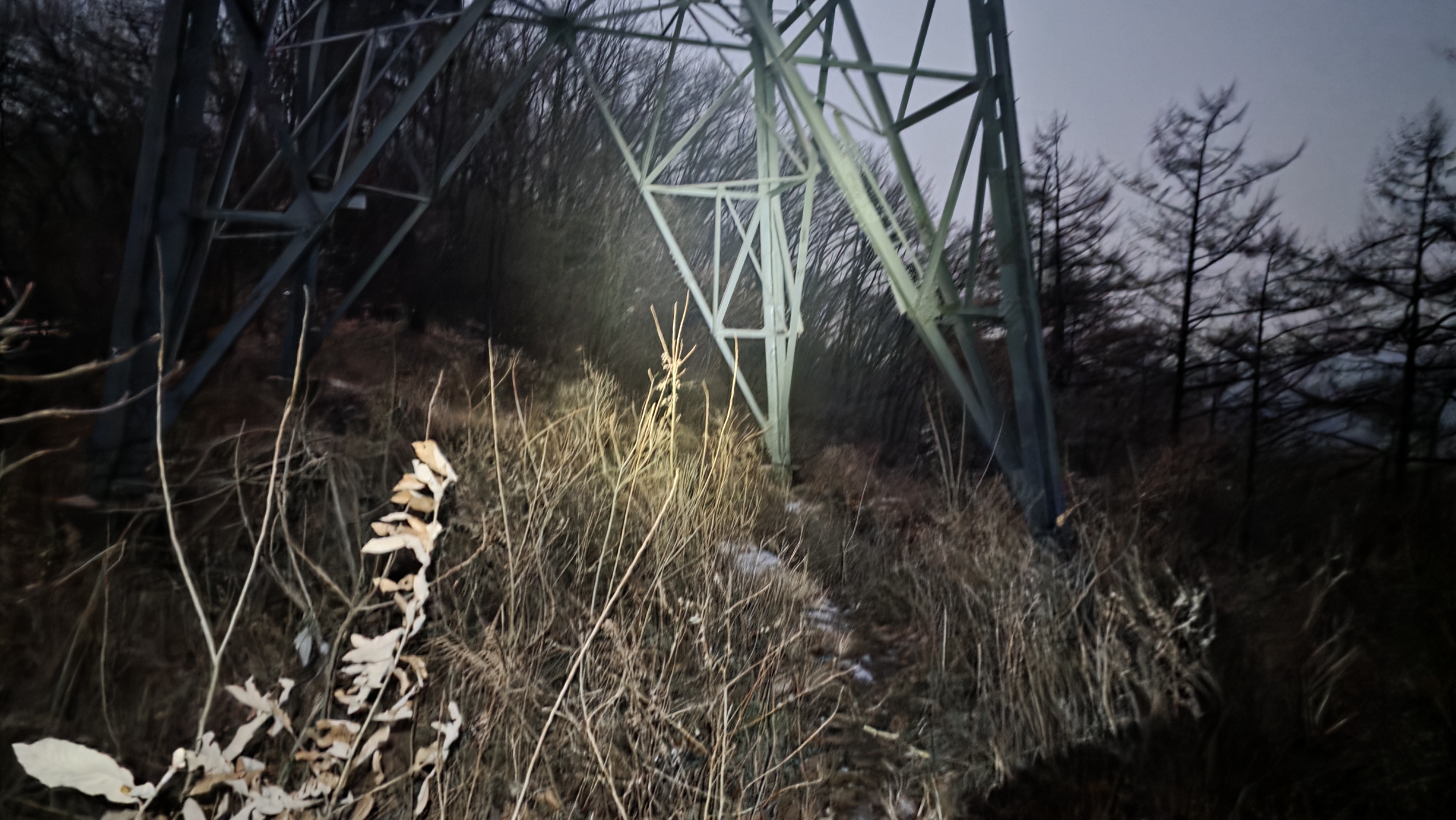 능선길 잡목 너머로는 송전탑이 방향을 같이하였고~