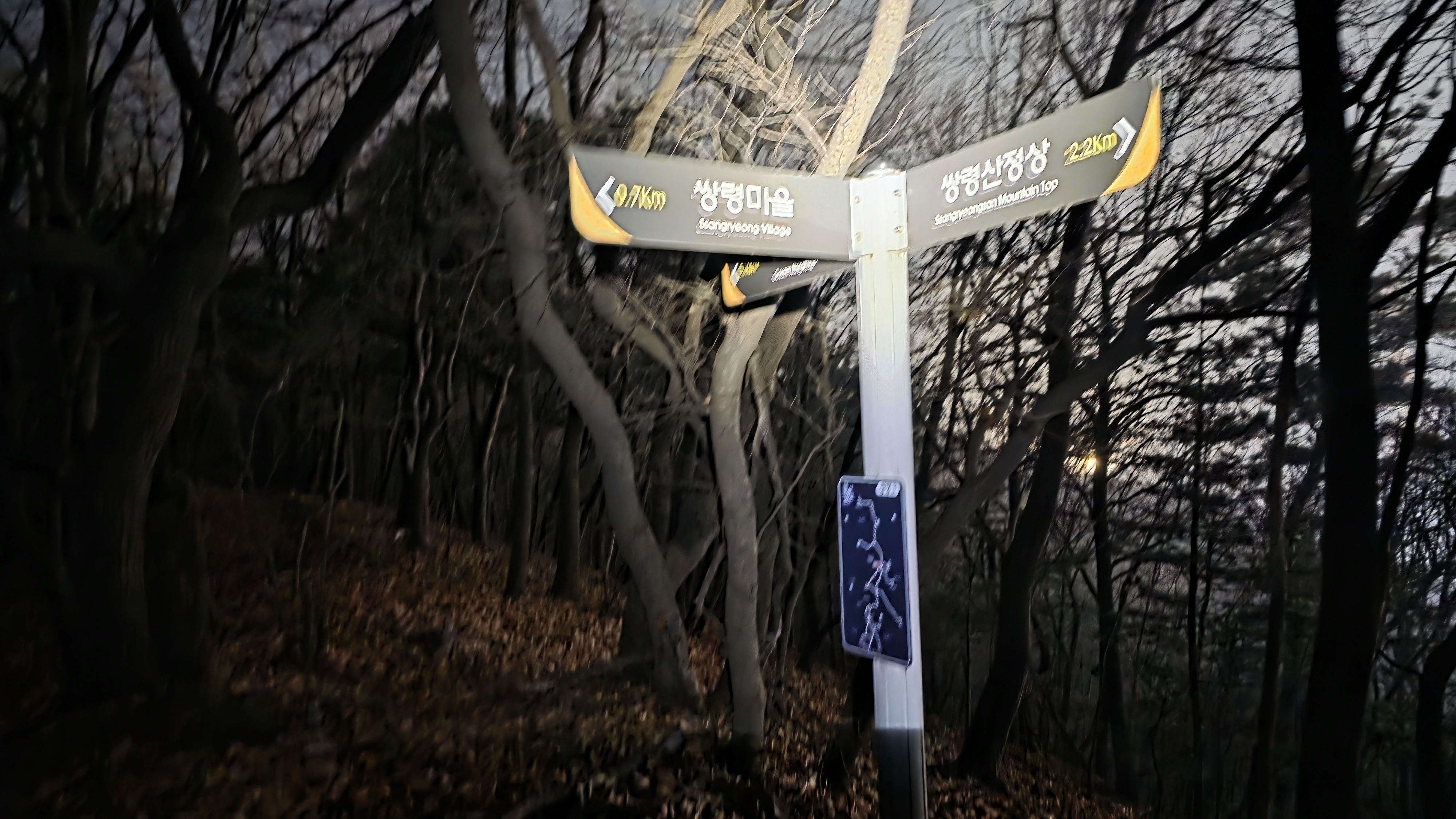 쌍령지맥 쌍령산을 지나 쌍령마을로 내려서는 갈림길이정표, 좌방향 700m라~