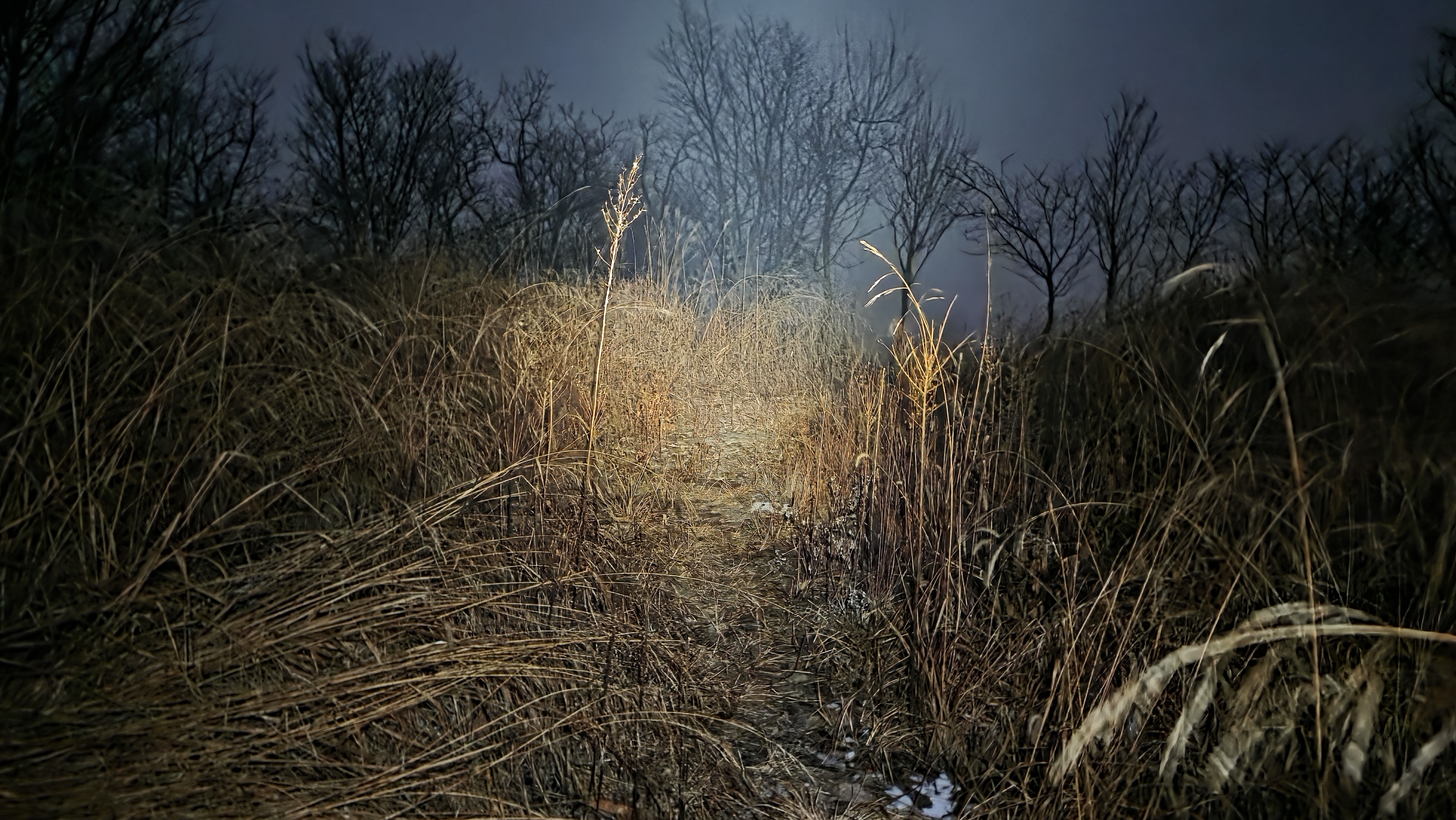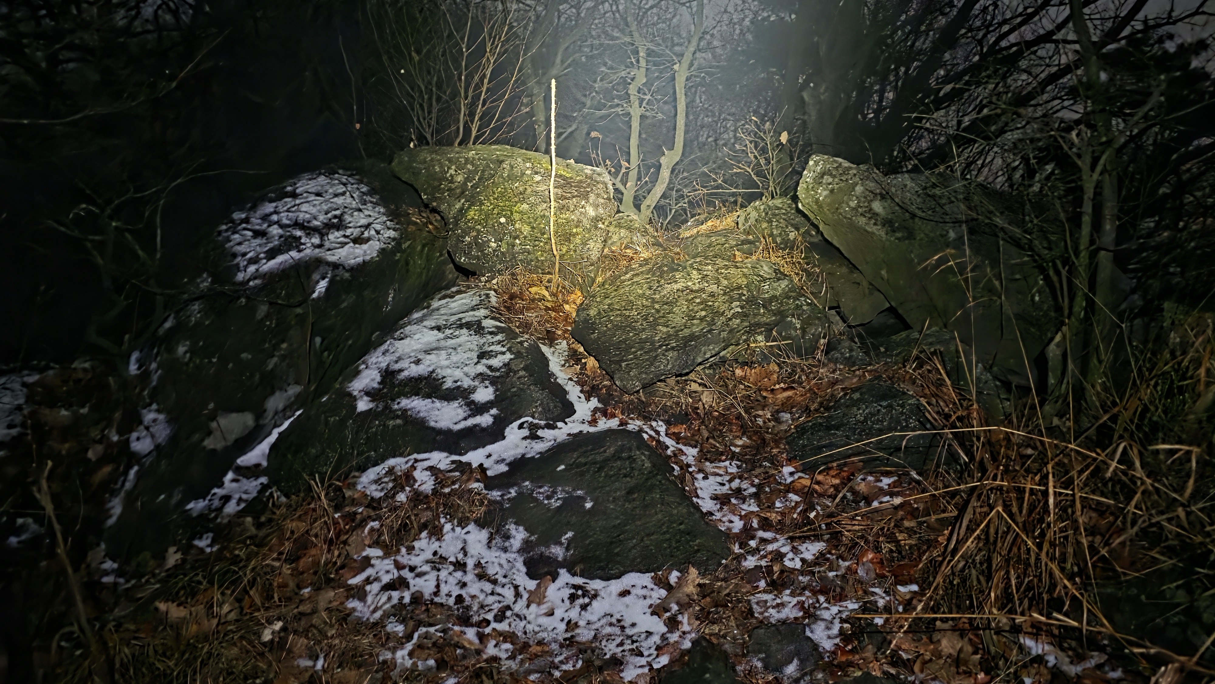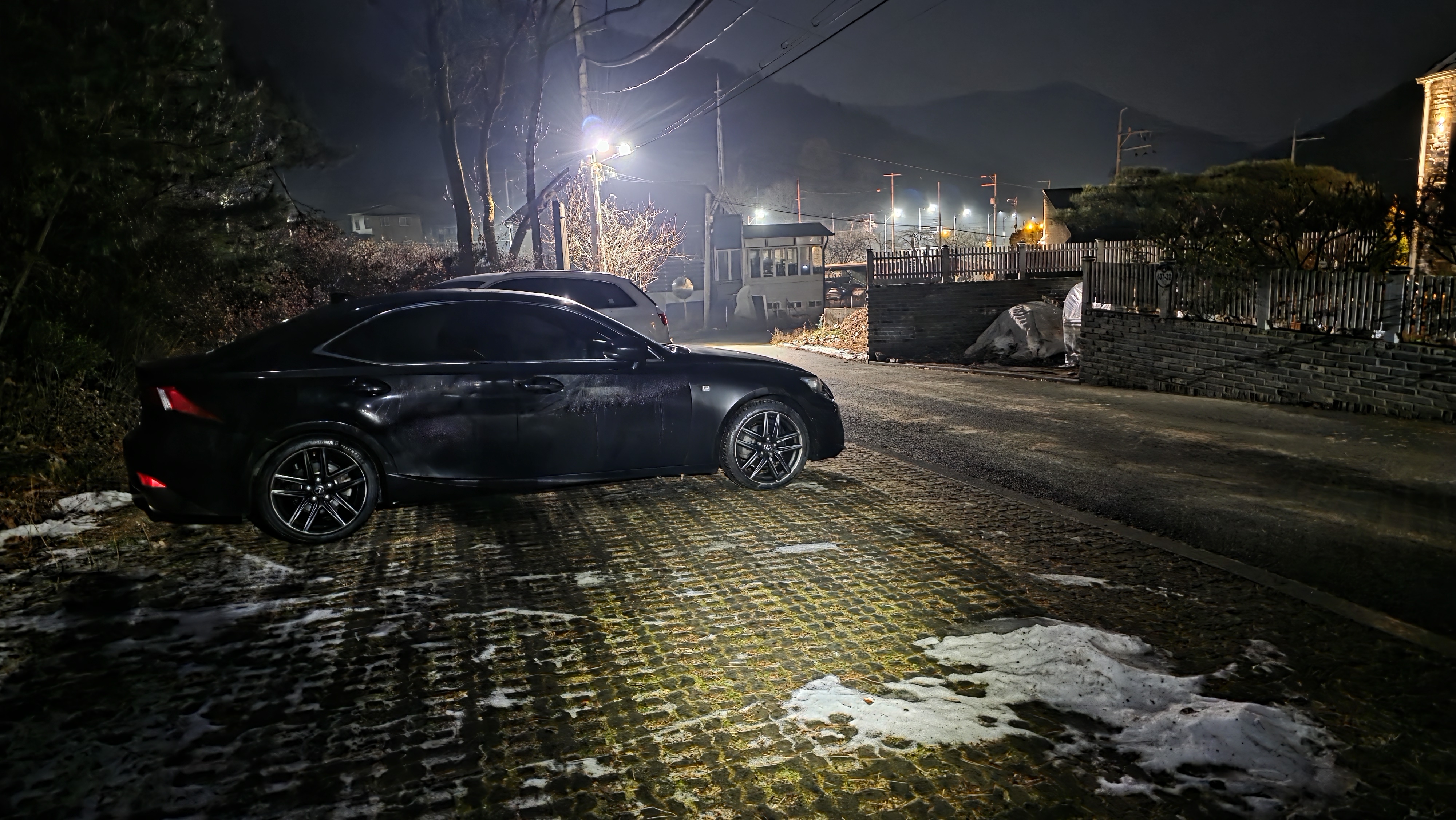 따르다 보니 좌방향 분기봉으로 오르는 마을길에는 눈이 녹지 않아 한밤중에 지난주처럼 차가
