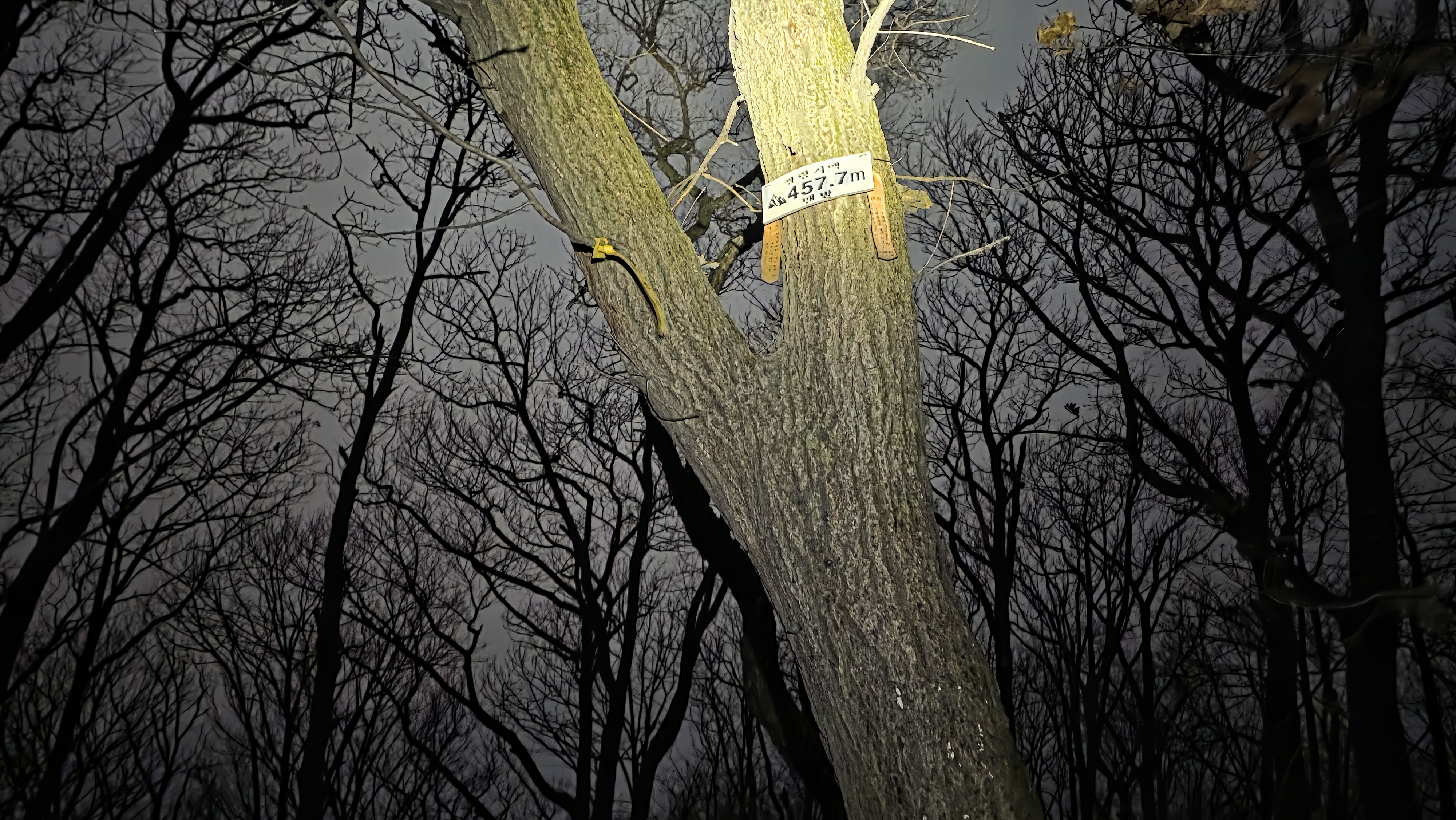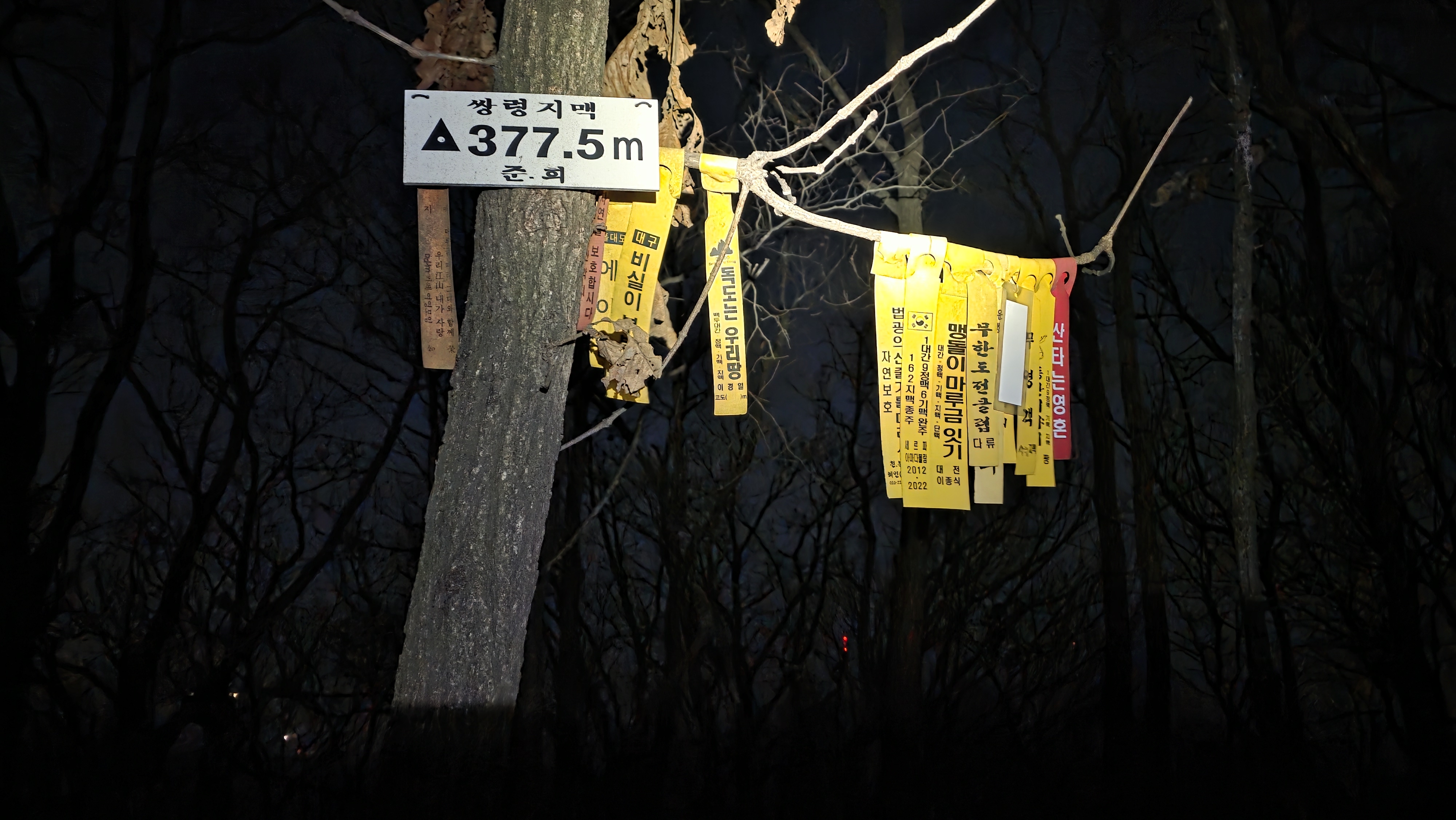 377.5 삼각점봉에는 앞선 님들께서 다 같이 모여 체온을 유지합니다. 06:01