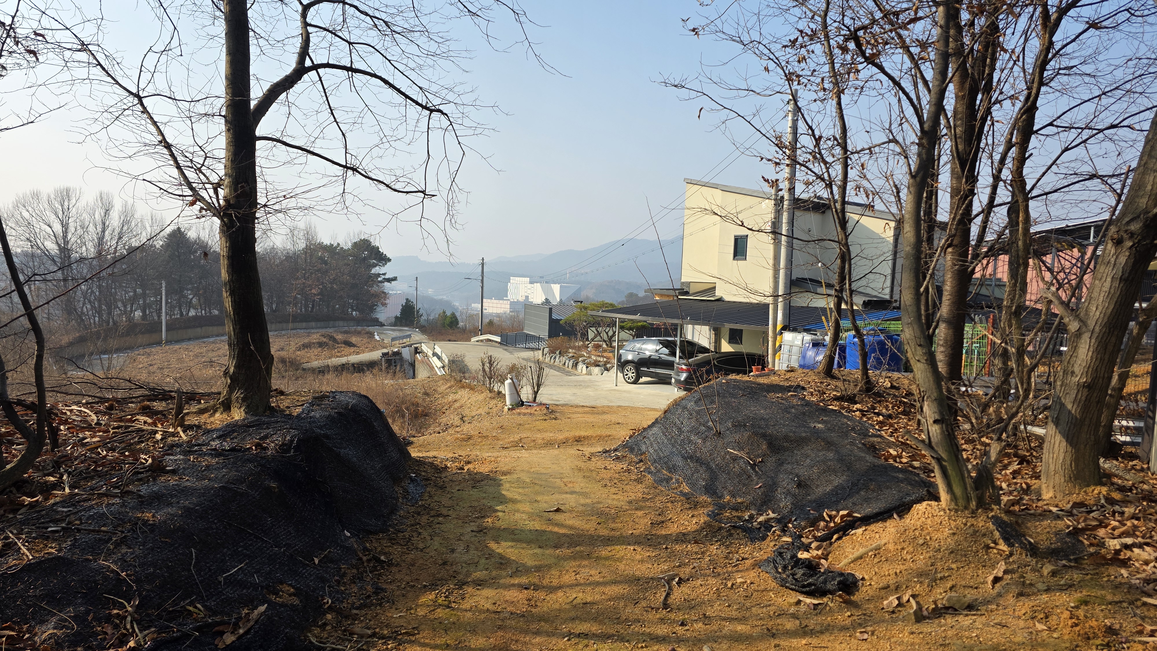 03:12 임도에 접속하였고 임도 밑으로는 용인시 원삼면의 일상이 펼쳐집니다.