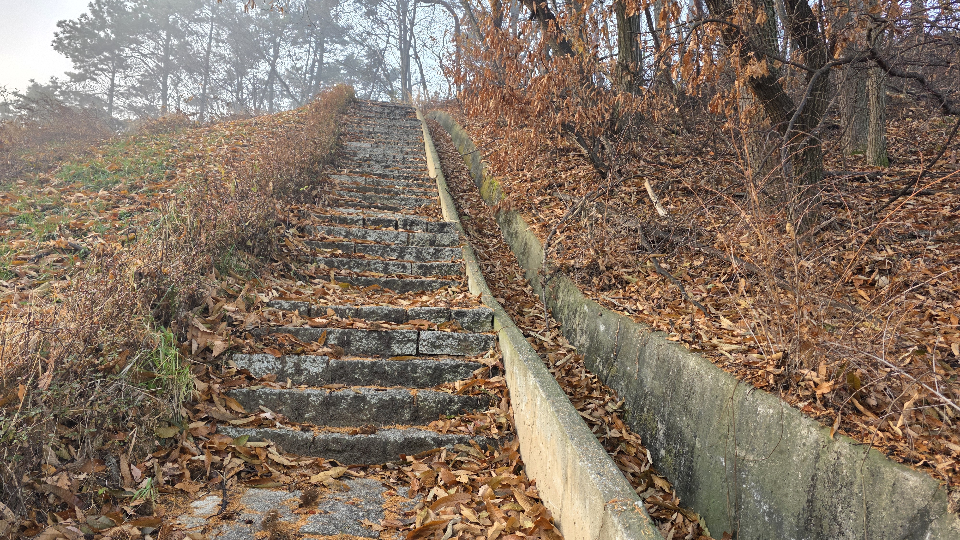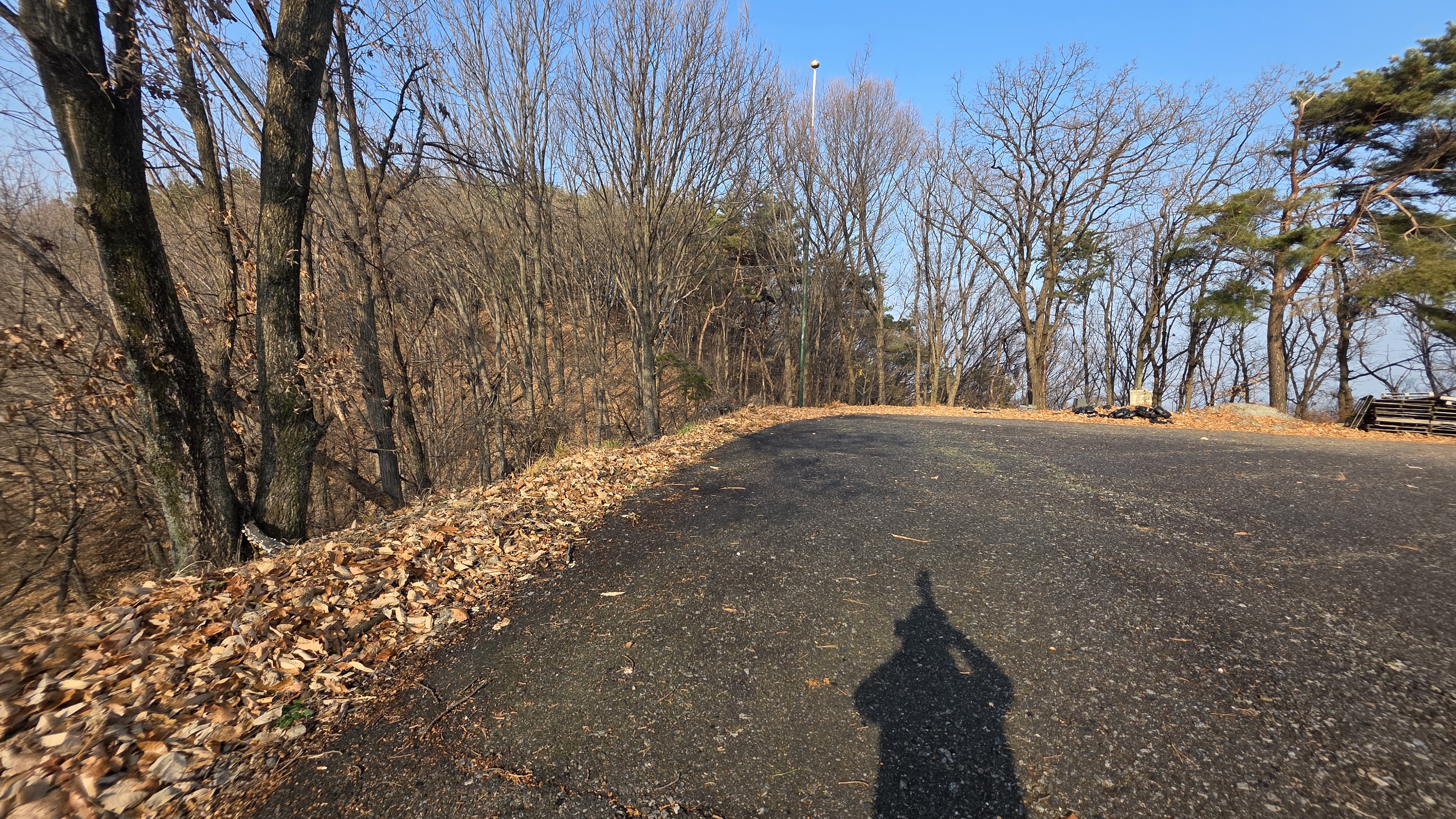 여기에서 무조건 건너편 능선에 접속해야 했는데 저는 도로 좌편의 계단길에 현혹되어 그 길을