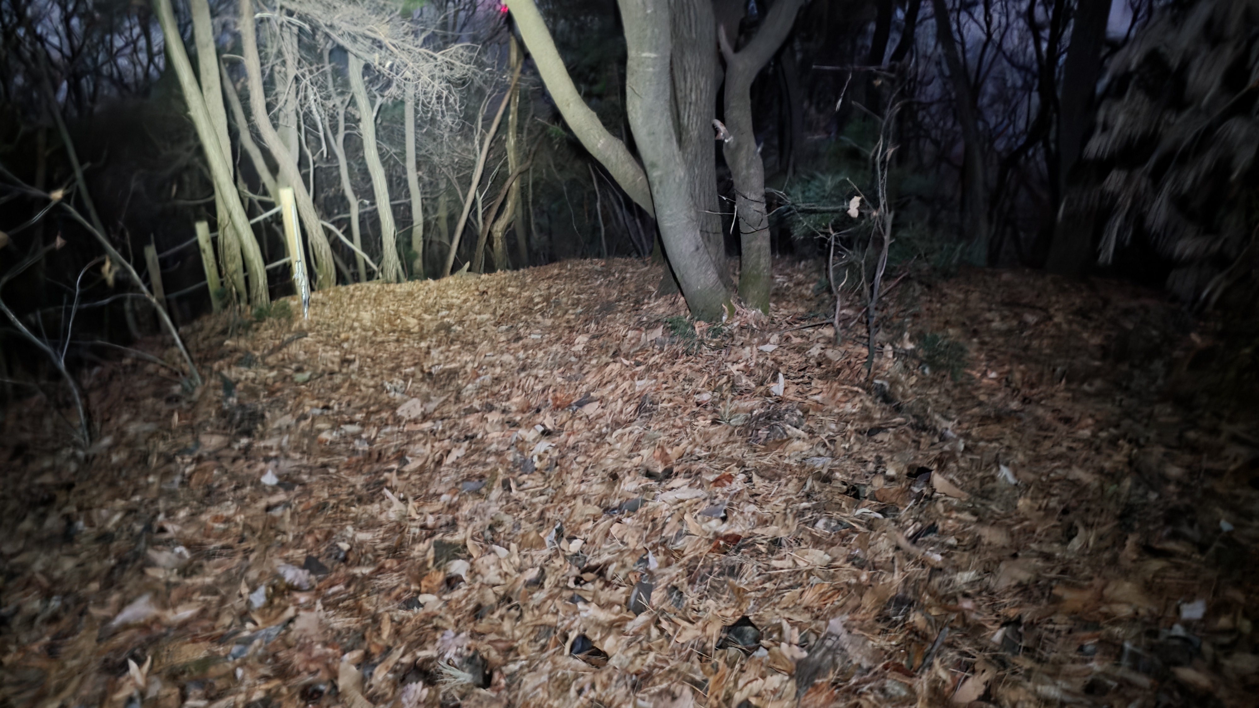 03:04 임도 좌커브길에서 직진, 뚜렷하지 않은 경사면을 치고 오르고~