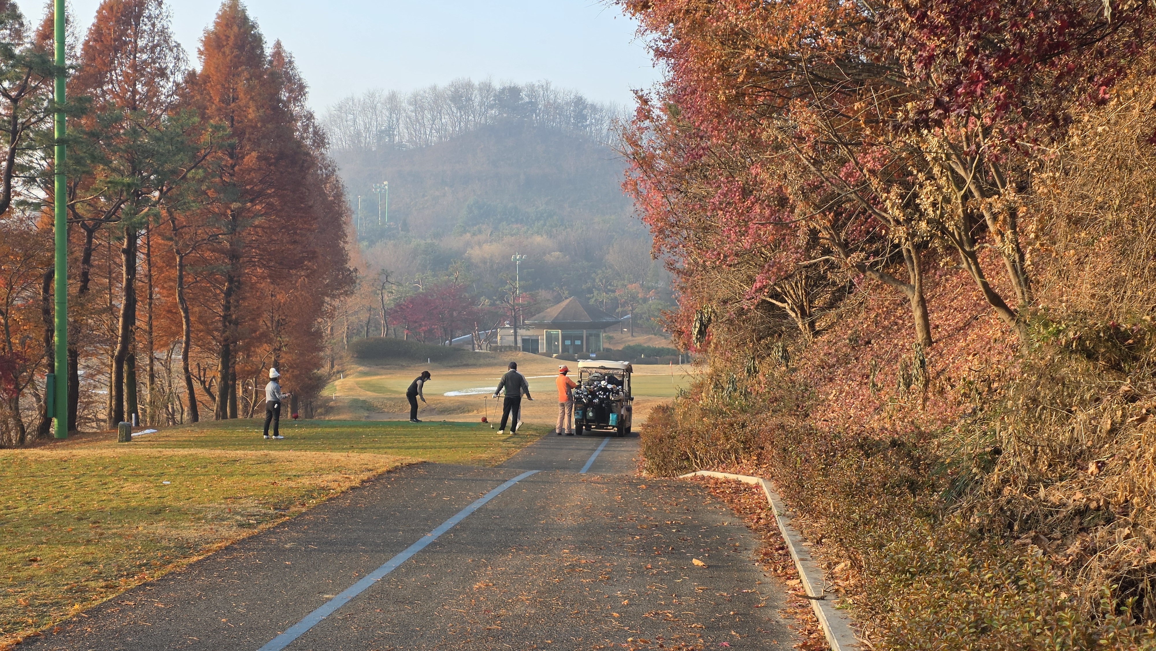 퍼팅을 마치고 이동하는 카트를 따라 같이 이동하였고 갈림길에서 벗어납니다.